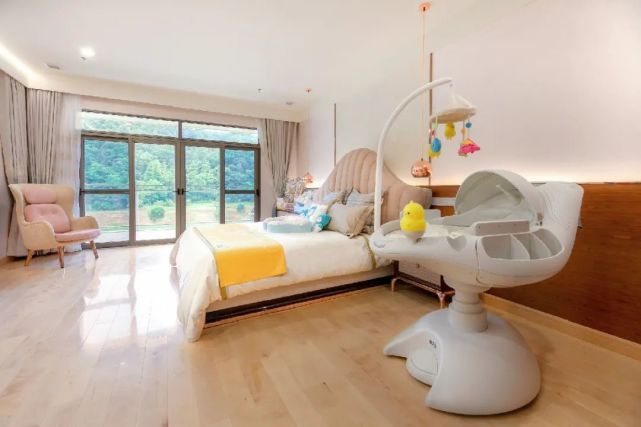 除了独一无二的优美环境,致友最吸引我的还有它的设施和服务。这里每间房都配有独立的育婴区,里面配备了全套的婴儿浴盆、游泳池和洗澡台,而且每个孩子都是专业护士一对一服务,而不是集中托管。这些点实在太吸引我们了!